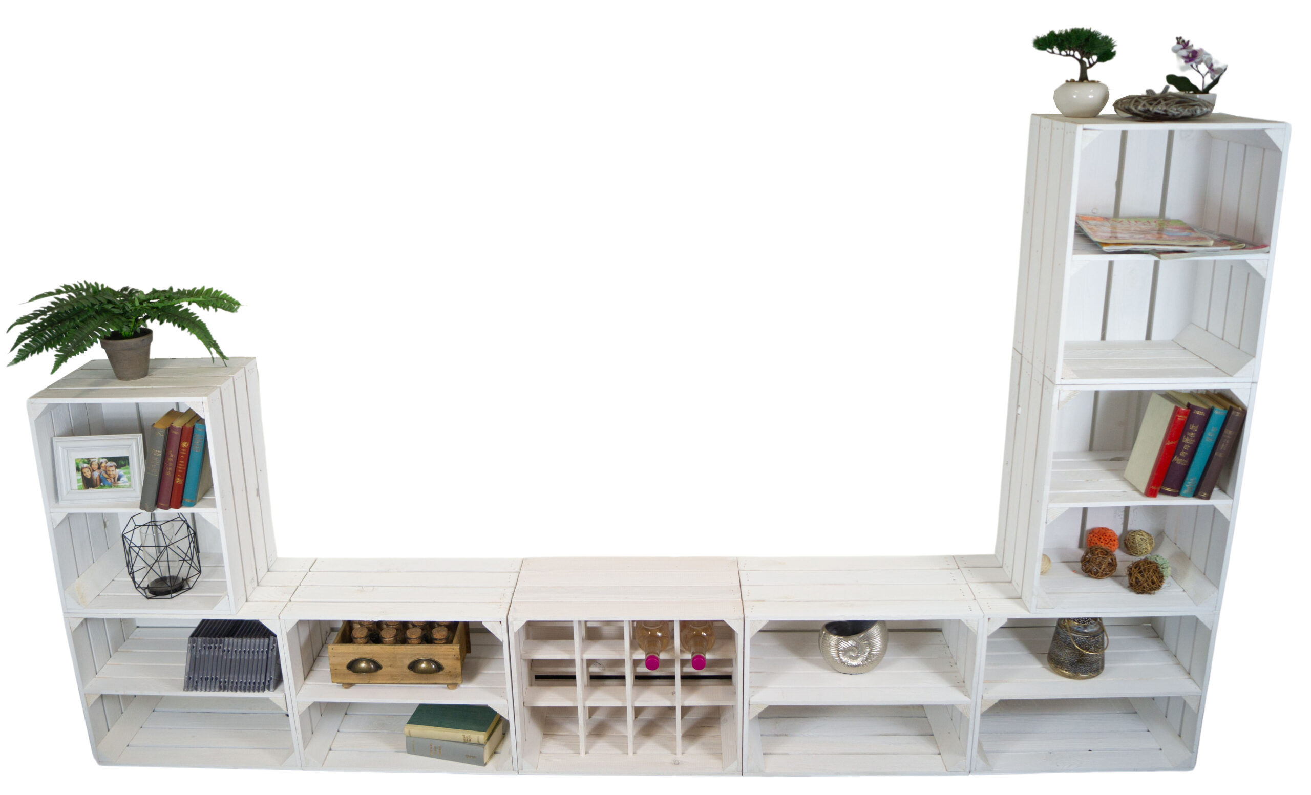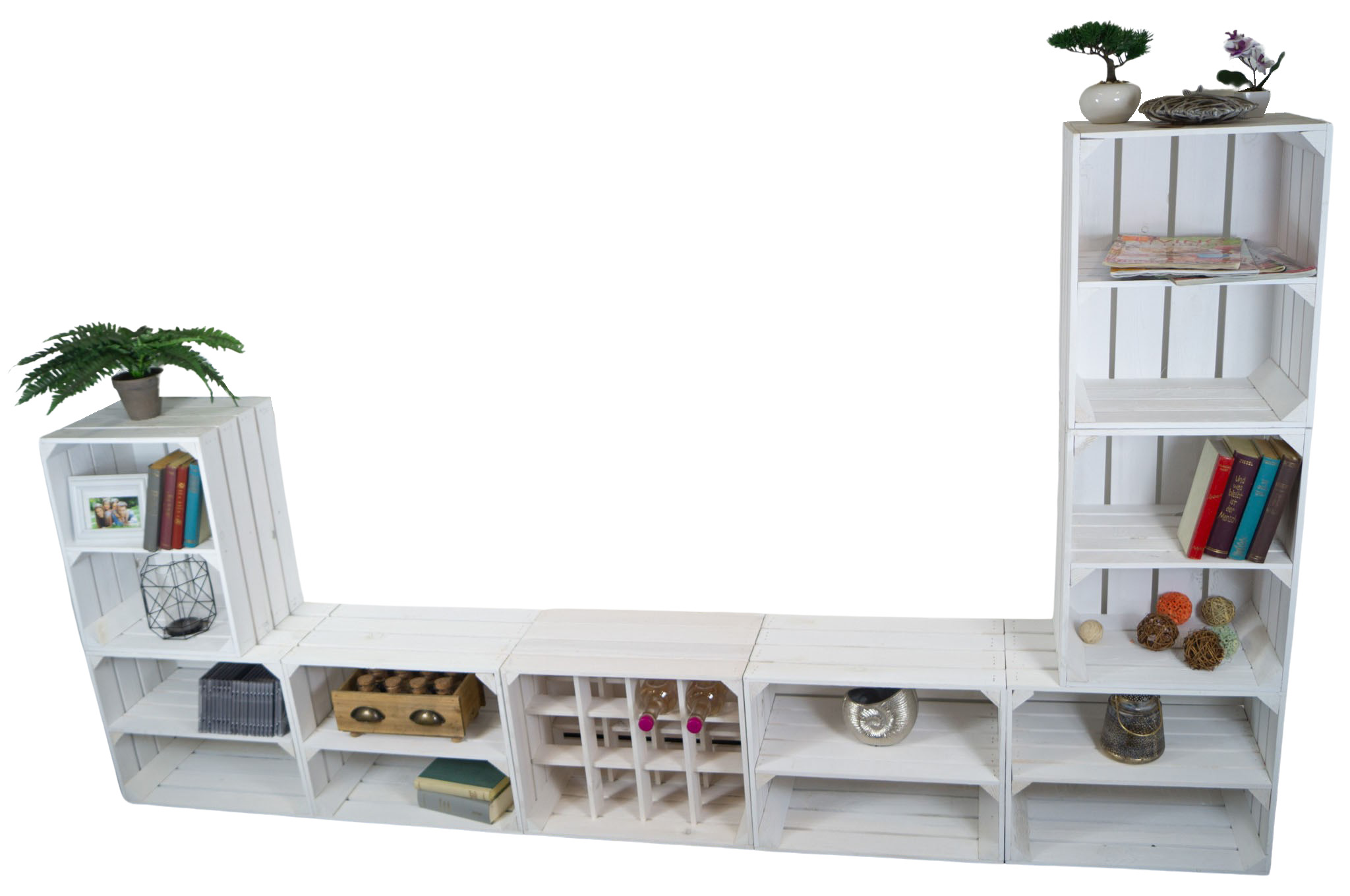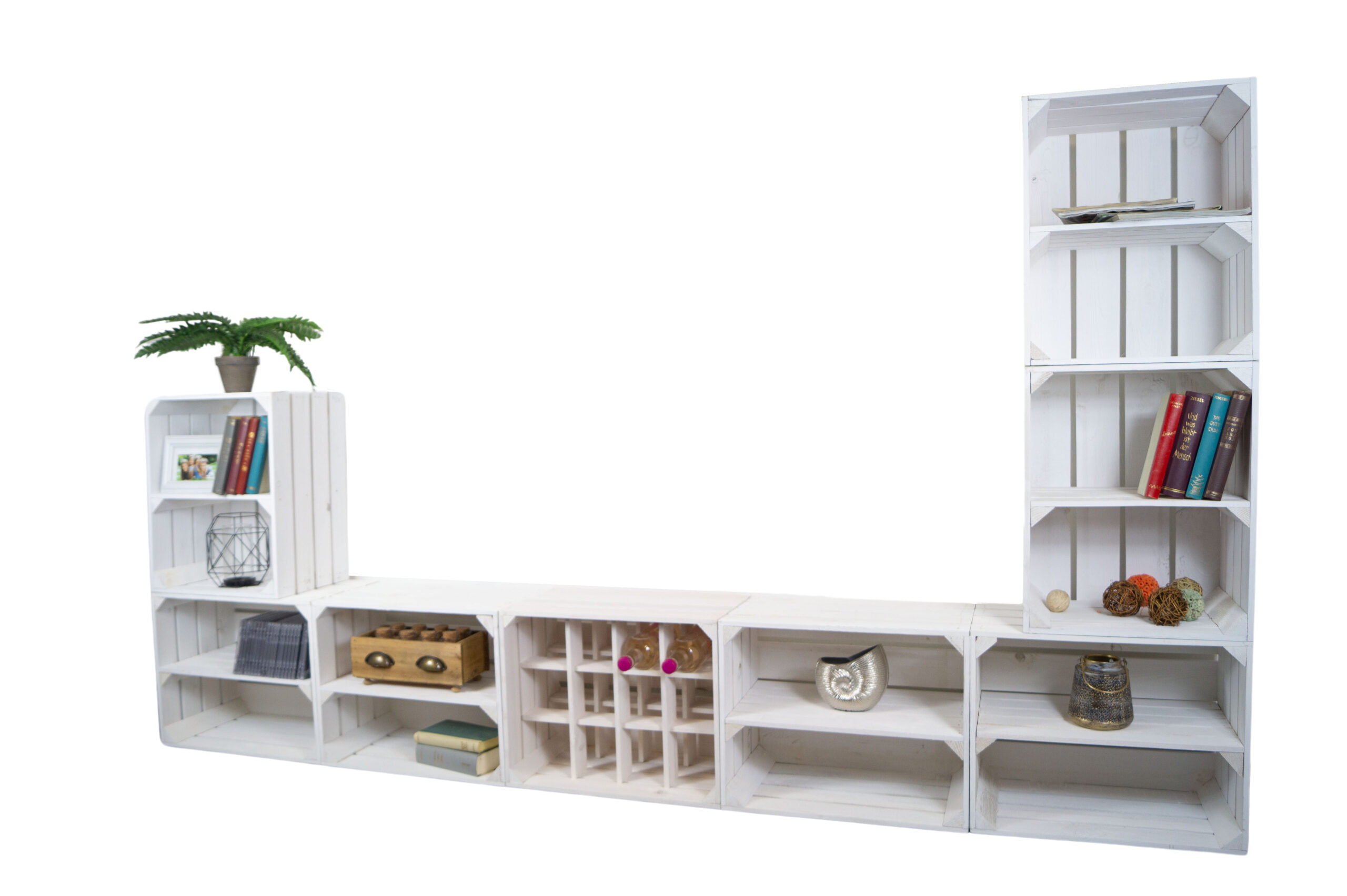 Wohnwand “Paris” mit TV Board und Kombiregalen (Weiß)